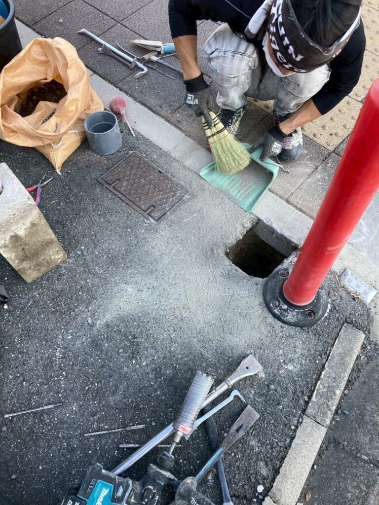 すぐ隣に歩道のブロックもあるため、注意しながら掘り起こします
